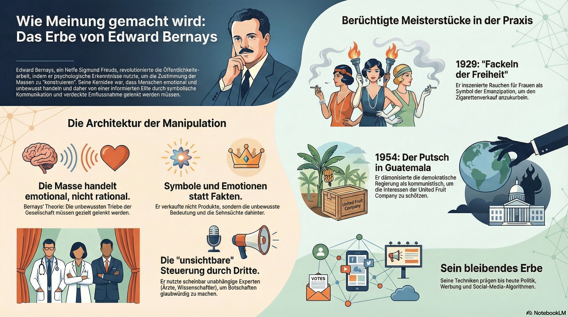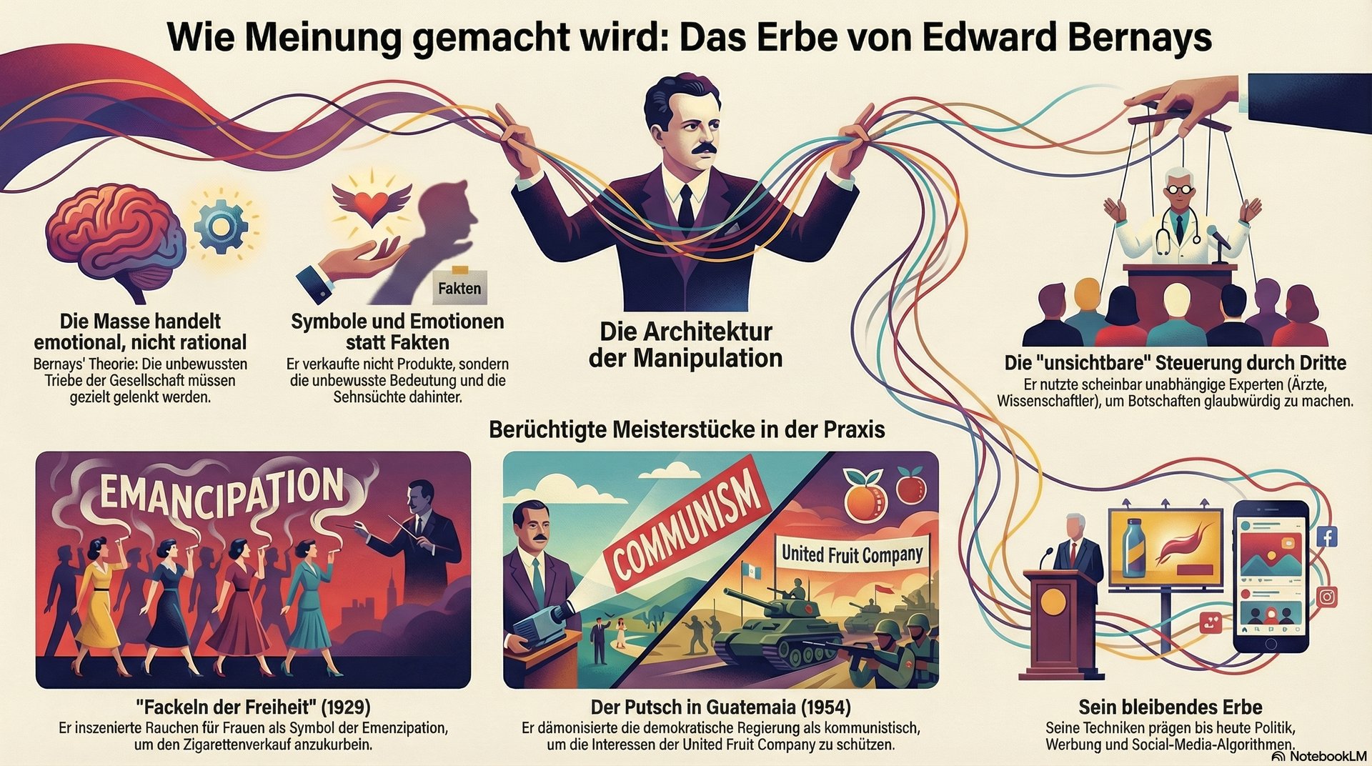 Edward Bernays hinterließ kein neutrales Werkzeug, sondern ein Machtinstrument. Seine Methoden finden sich heute in: